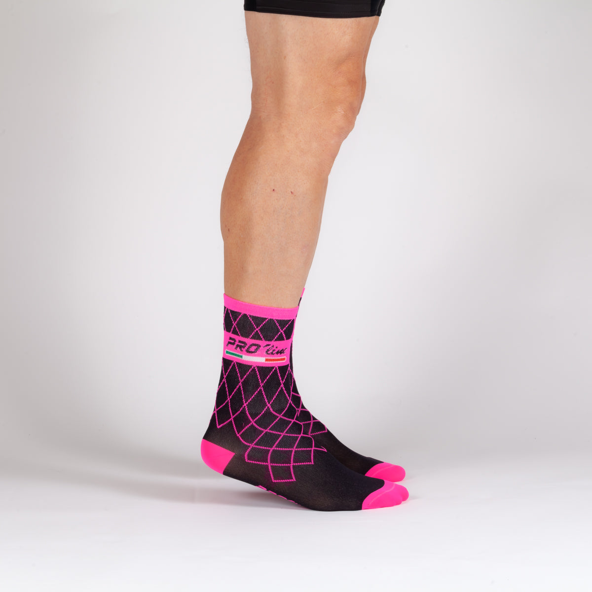The cycling socks rombhus PRO’ line they are made in one material breathable and light to provide optimal comfort. The geometric design draws gods rhombuses and the colors available are the most used in the various socks lines of our brand: Yellow, green, orange and fluorescent pink .