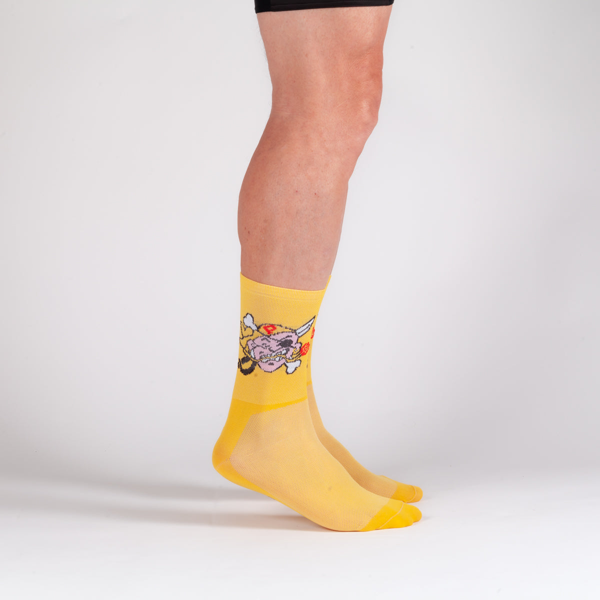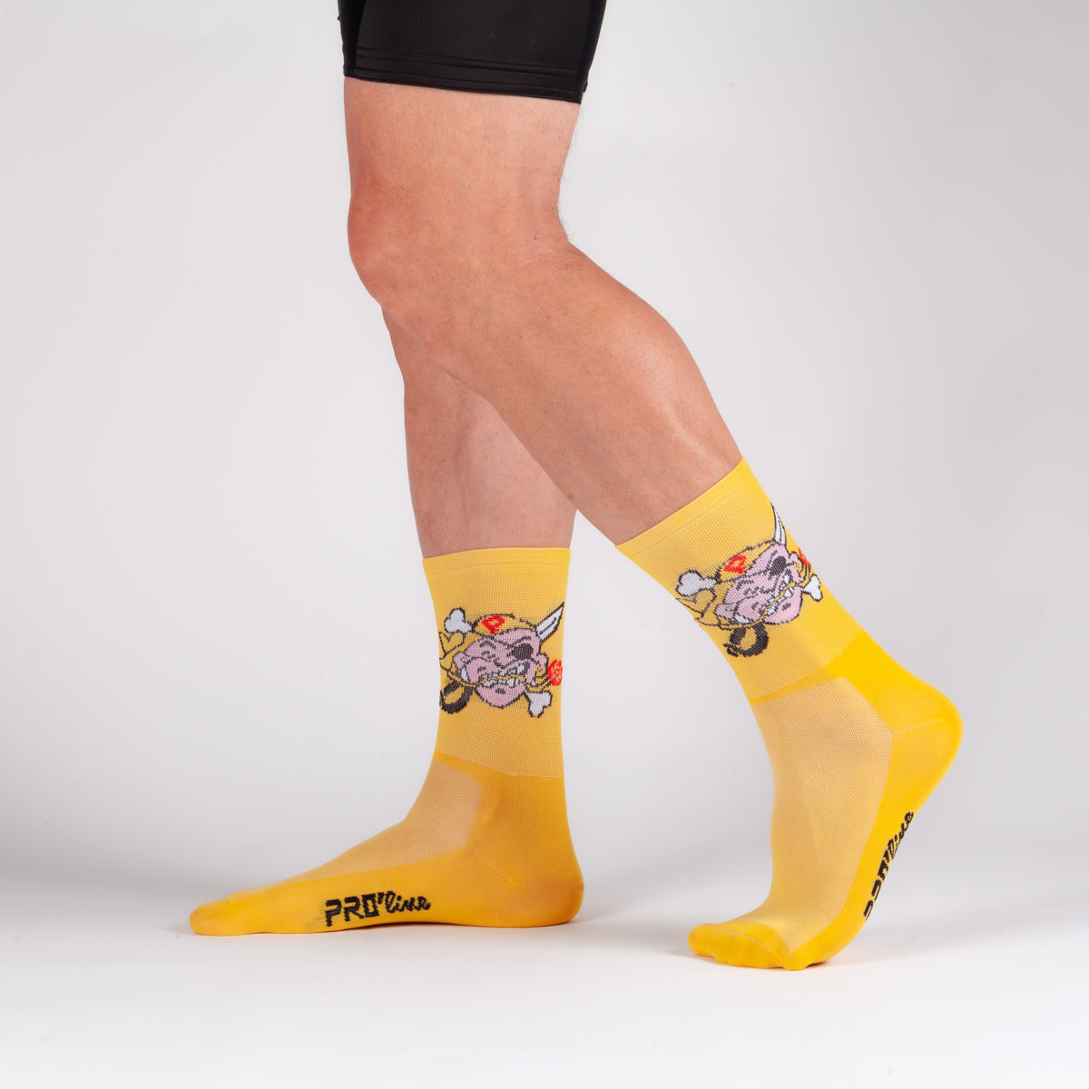 Le calze da ciclismo pirate PRO’ line sono fatte in un materiale traspirante e leggero per fornire un comfort ottimale. La creazione di queste calze è strettamente legata a lui, uno dei più grandi ciclisti italiani mai vissuti…Marco Pantani. Anche noi come te, abbiamo vissuto le emozioni che solo il Pirata sapeva regalarci.