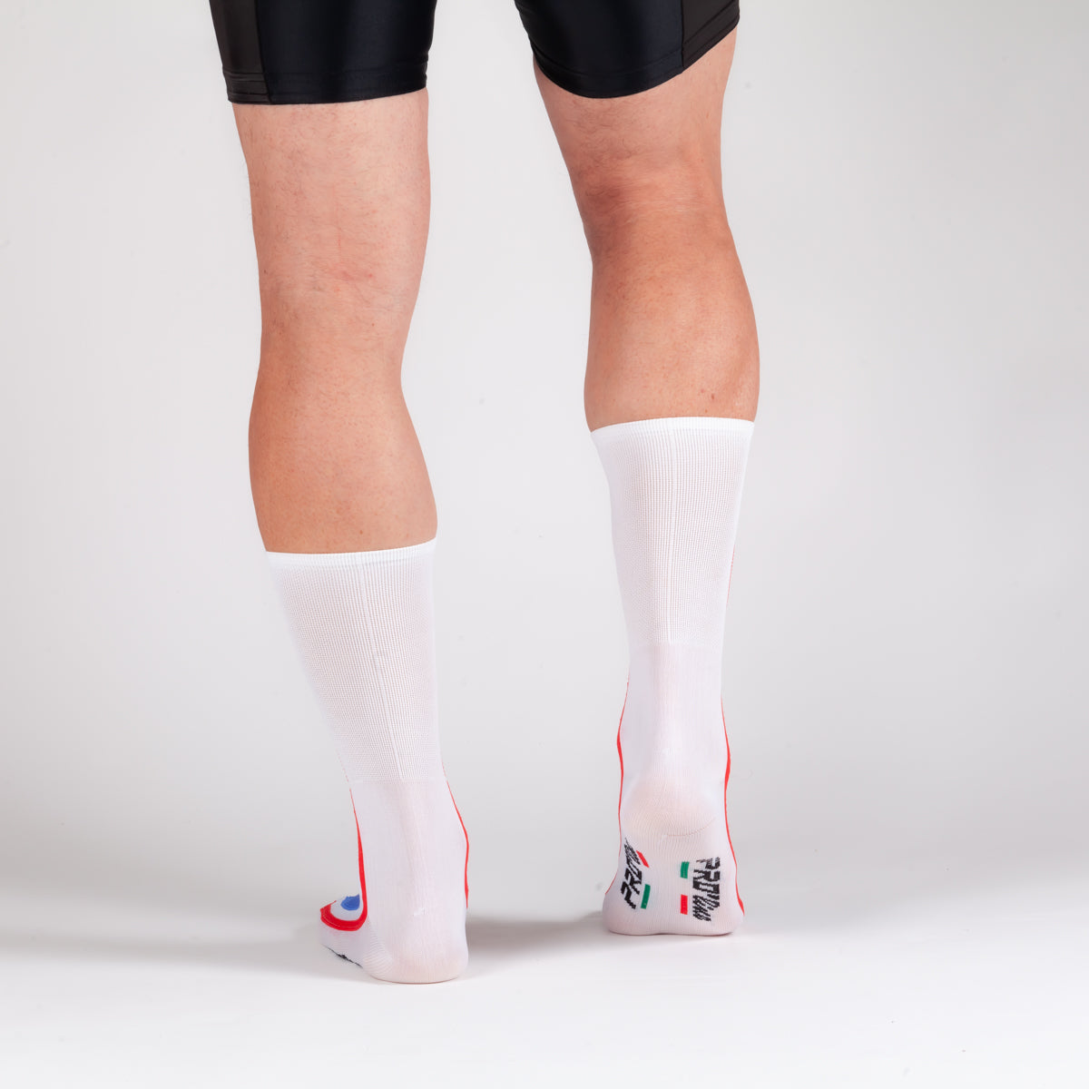 Le calze da ciclismo vintage edition PRO’ line sono fatte in un materiale di qualità, traspirante e leggero per fornire un comfort ottimale. Il taglio alto è moderno, il design è vintage, richiama trame e colori di team professionistici di tanti anni fa. Il risultato è un compromesso stilistico unico nella nostra linea.